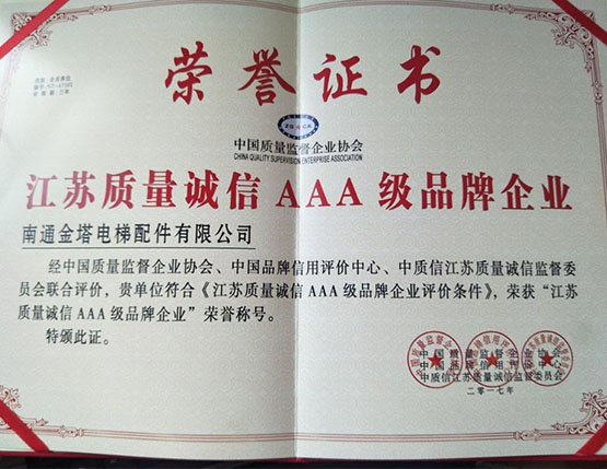江蘇質量誠信AAA級品牌企業